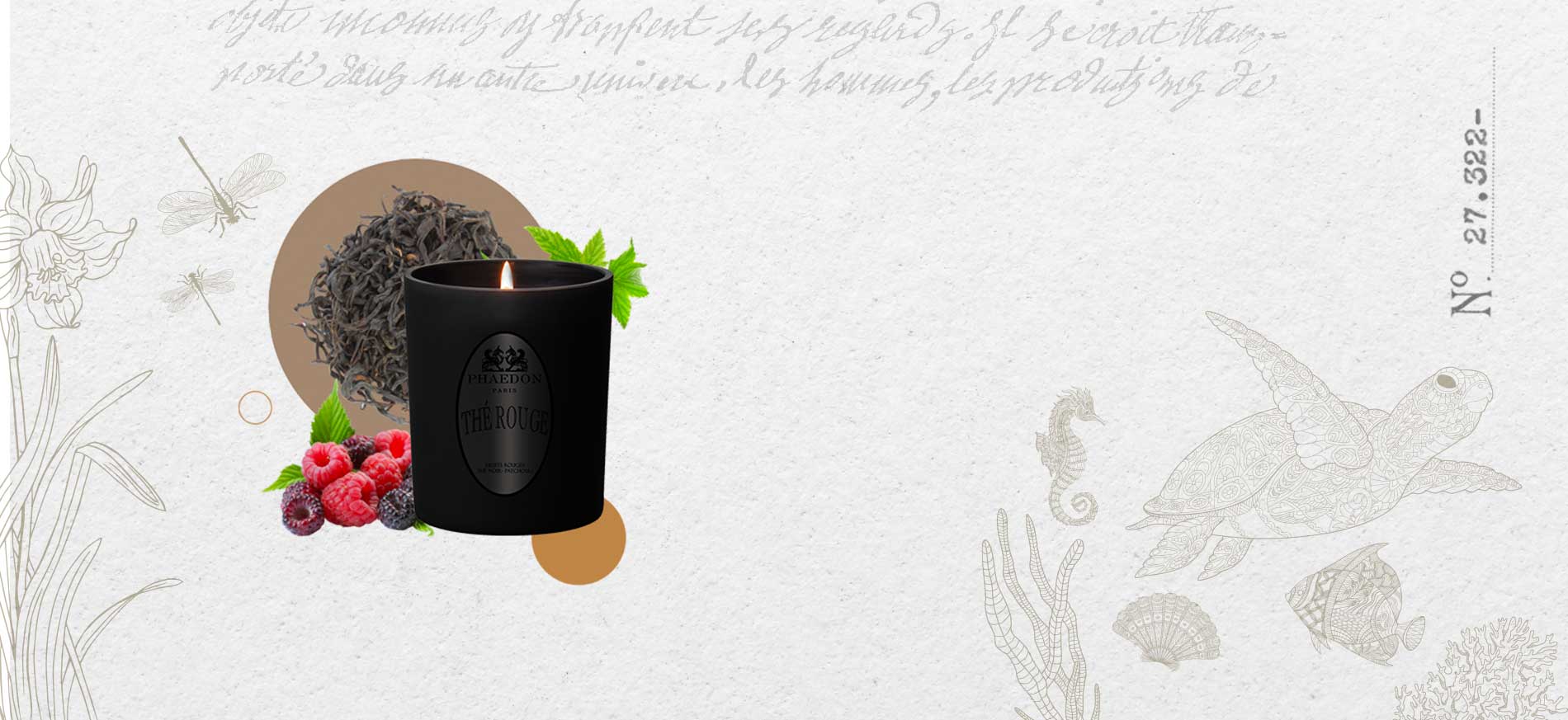 Des feuilles de thé noir importées d’ailleurs lointains et qui auraient capturé le parfum d’autres trésors exotiques durant la traversée : grenade, feuilles de patchouli, cannelle, davana composent un cuir fruité fumé. Les volutes de “Thé Rouge” sont plébiscités par les fumeurs de tabac pour parfumer l’intérieur de la maison.
